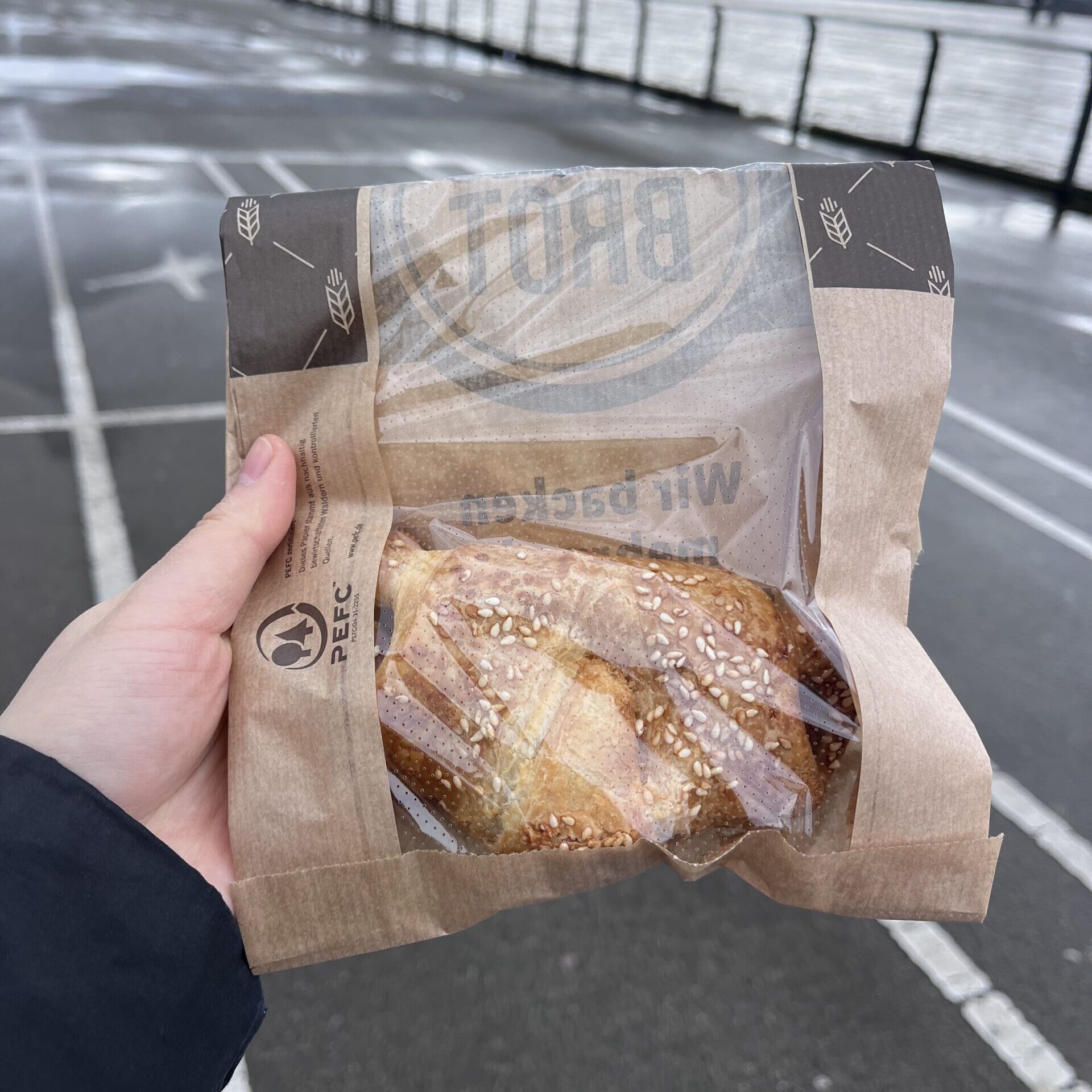 スーパーで買ったソーセージクロワッサンを食べながらライン川沿いを散歩。
