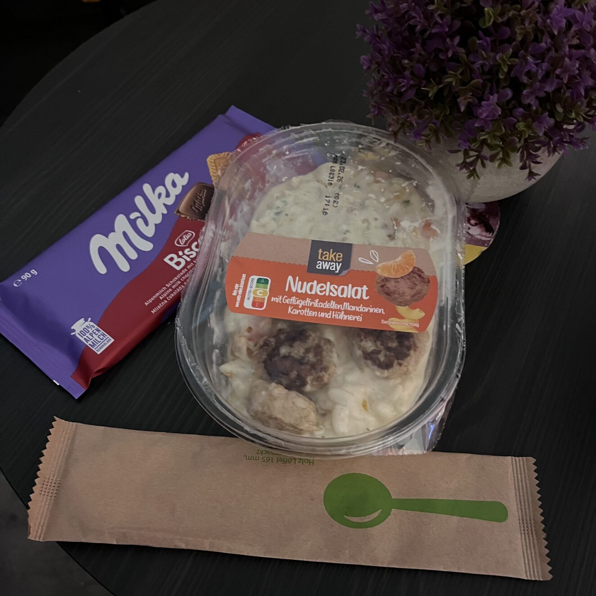 帰り道にスーパーで夜ごはん用にマカロニサラダを買いホステルのロビーで食べました